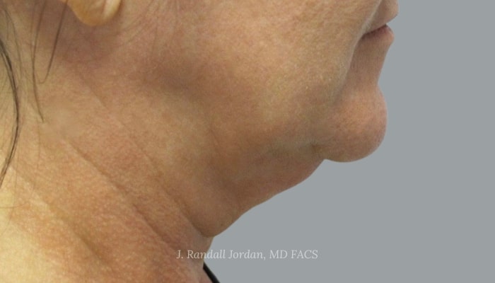 Before: This patient was dissatisfied with both her sagging skin and fat beneath her chin. She elected to have laser liposuction (Acculift) performed.