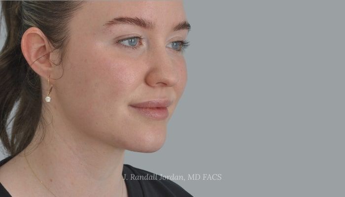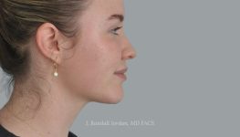 Before: This 23-year-old patient was an excellent candidate for laser liposuction (AccuLift). Her chief concerns were the lack of definition in her jawline and the appearance of a double chin when looking down.