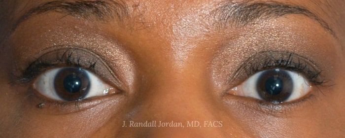 Before- This young lady was unhappy with the bulges under her eyes and desired improvement. After discussion of the options of filler injections versus a transconjunctival blepharoplasty with fat removal, she chose the surgical option because it was longer lasting.