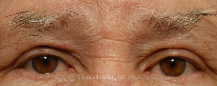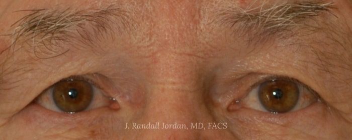 Before- This gentleman was bothered by his heavy eyelids. He has both redundant upper eyelid and eyebrow ptosis or drooping. He would benefit most from both an upper eyelid blepharoplasty and a brow lift. He was not willing to undergo a brow lift and opted for an upper eyelid blepharoplasty alone.