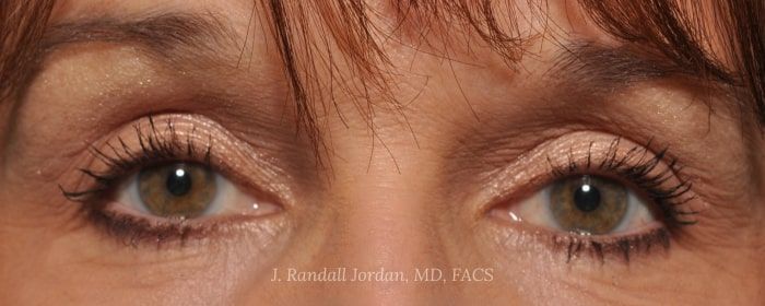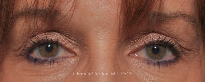 Before- This lady desired improvement in the crepe-like appearance of her eyelid skin. She underwent upper and lower blepharoplasty primarily for skin excision.