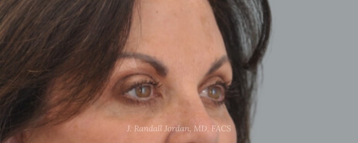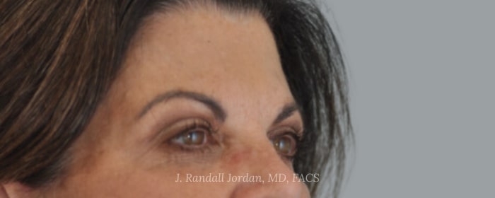 After: After her Coronal Brow Lift she was happy with the improved shape of her upper eyelid and the more open appearance of her eyes. Also noticeable is the improvement in her skin tone, texture, and discoloration. This is a result of a compilation of IPLs, chemical peels, and a good at-home skincare routine.