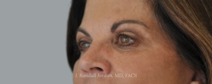 Before: Three years after having a face and neck lift, this patient desired improvement in her brow and upper eyelid complex and underwent a Coronal Brow Lift.
