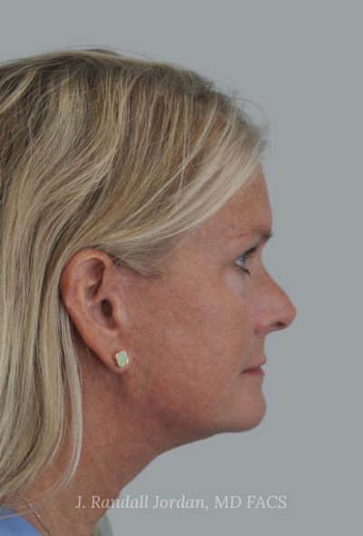 After: She was very pleased and happy that she did both procedures, as she felt that together they helped her regain a more rested, happy appearance! Her total facial rejuvenation also included upper blepharoplasty and an under-eye chemical peel.
