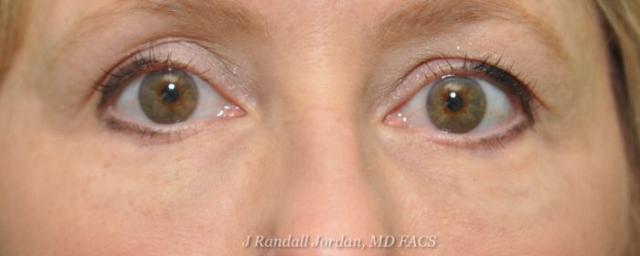 Pre injection: This patient was troubled by the bags and wrinkles under her eyes but did not