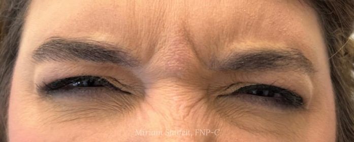 Before: This 39-year-old female was bothered by the heaviness of her brows as well as the vertical lines between them.
