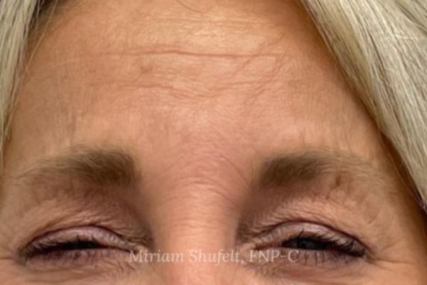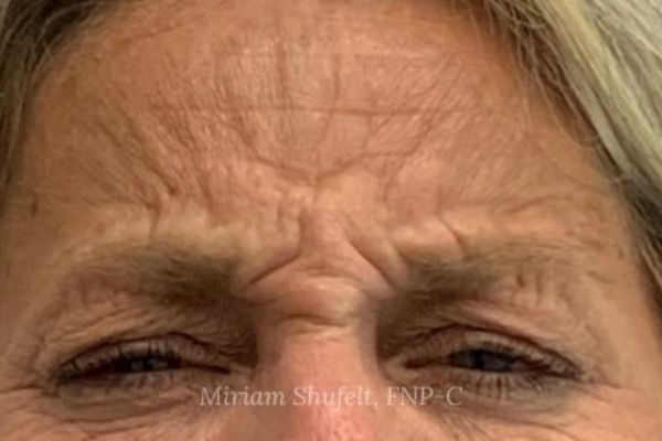 Before: This 54-year-old patient presented with fine lines at rest and in motion, especially the 11 lines between her brows.