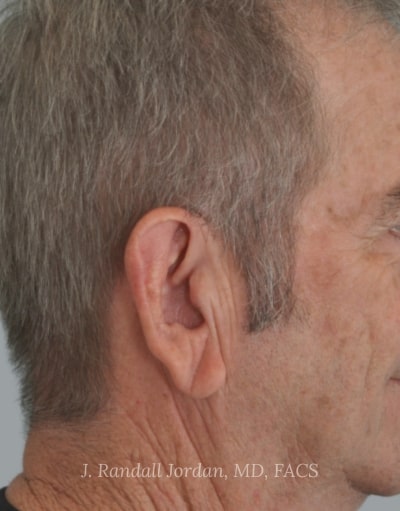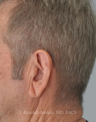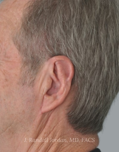 After: Following surgery, he was extremely happy with the size and shape of his ears. While those were his main concerns, he also asked that they be made less prominent. In addition to a bilateral ear reduction and reattachment of the earlobes, Dr. Jordan also performed ear pinnings.