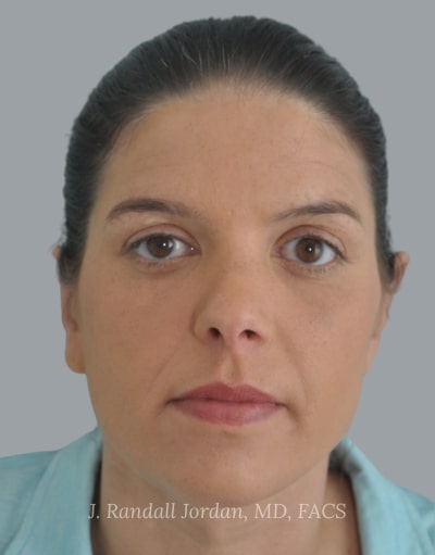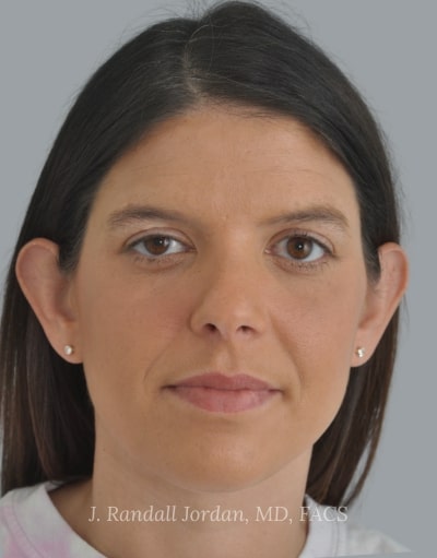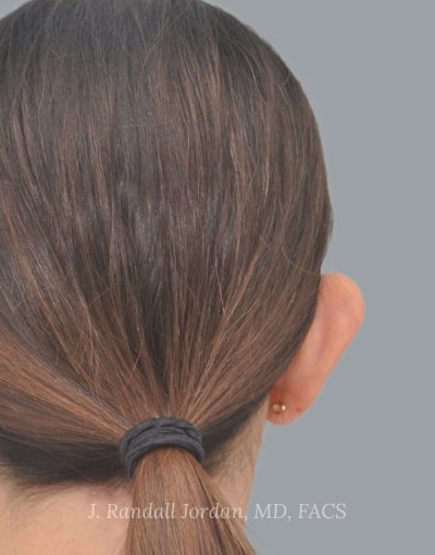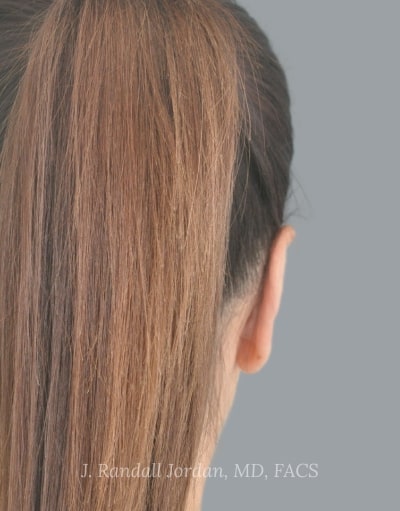 Before: This 36-year-old female had been unhappy with her protruding ears all her life. After consultation with Dr. Jordan, she elected to proceed with an otoplasty.