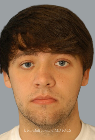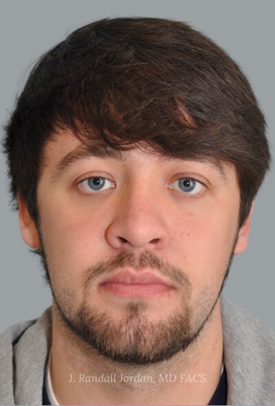 Before- This young man was bothered by his crooked nose. In this image the left side of the nose is pushed in, and the right side is pushed out.