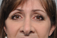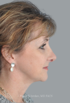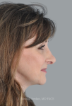 Before- This nice lady was unhappy with the results of her previous rhinoplasty by another surgeon. She specifically did not like the shape of her tip and the appearance of the nostril rims on her profile view, known as columellar show.